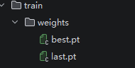 )训练完成后,会在v1目录下生成一个runs文件夹,其路径下会产生一个权重文件,路径如下:v1/runs/detect/train/weights,weights文件夹下会生成一个best.pt文件,这个就是训练后检测模型文件。