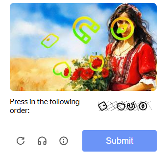 图标点选验证码,这里以各种图标通过顺序小图来判断与背景图中的图片是否相似,按照小图顺序逐个点击。